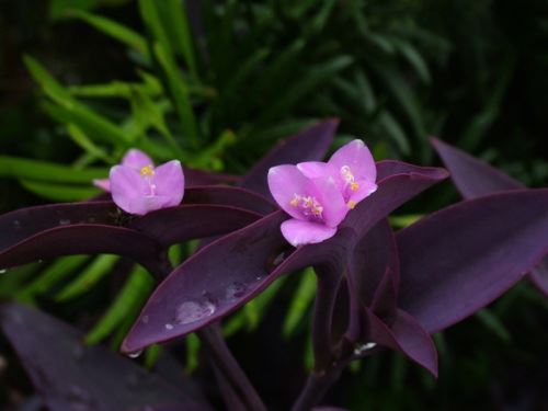 紫鸭跖草性喜温暖湿润、蔽荫的环境,不耐寒,对土壤要求不严,但在干燥瘠薄处不能生长。紫鸭跖草叶全为深紫红色,较为少见,夏秋两季不断开放淡紫色小花,形如蝴蝶,清晨开放,夜间闭合。茎圆柱形、肉质、多分枝,7~9月份开花,适于庭园自然布置。扦插生殖操作简单,成活容易。25℃条件下2周便可生根,四季均可进行。盆栽宜采纳高盆,使植株自然下垂。注意水肥治理,需有充足的光照,以确保植株健康生长。如长期放阴处,植株易徒长。