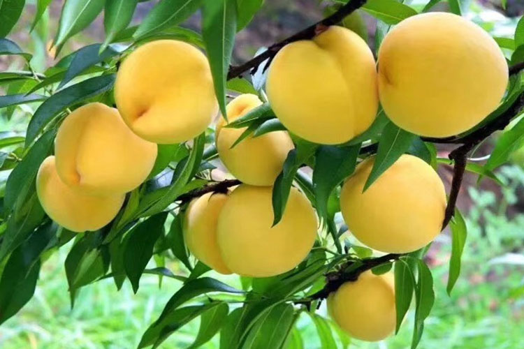 看外观:成熟后的炎陵黄桃金黄诱人,色泽艳丽,果面基本呈黄色。
