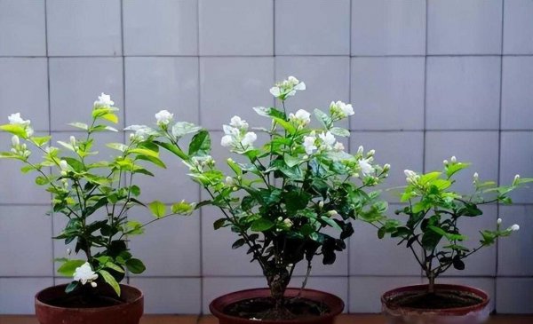 接下来是茉莉,叶色翠绿,花朵白如雪,散发着浓郁的香气。茉莉也需要充足的光照,夏季要适当遮阴,但保持每天4~6小时的直射光。它适合放置在阳台,但要避免过大的风力。