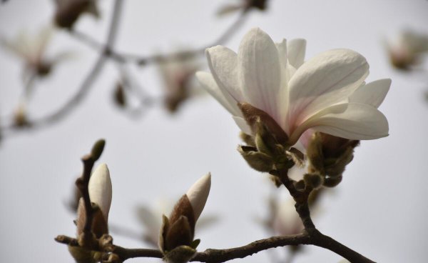 白玉兰,也被称为日本白玉兰或狗鱼白玉兰,是日本最受欢迎的白玉兰品种。指的是它的花蕾看起来像一个小拳头。玉兰是一种可爱的落叶乔木或大灌木,在春天开大而有香味的白花。