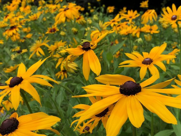 即大家口中的黑眼菊,实为菊科、金光菊属多年生草木,此株原产自北美地区,是一款非常好看的观赏性菊花。金光菊株型适中,花期长、落叶期短,一旦盛开,每株枝头都可见到满满当当的小黄花,清丽雅致,不仅可用作公园、庭院、花坛等公共场所的装饰兼布置,亦是瓶插、盆养的有利选择。