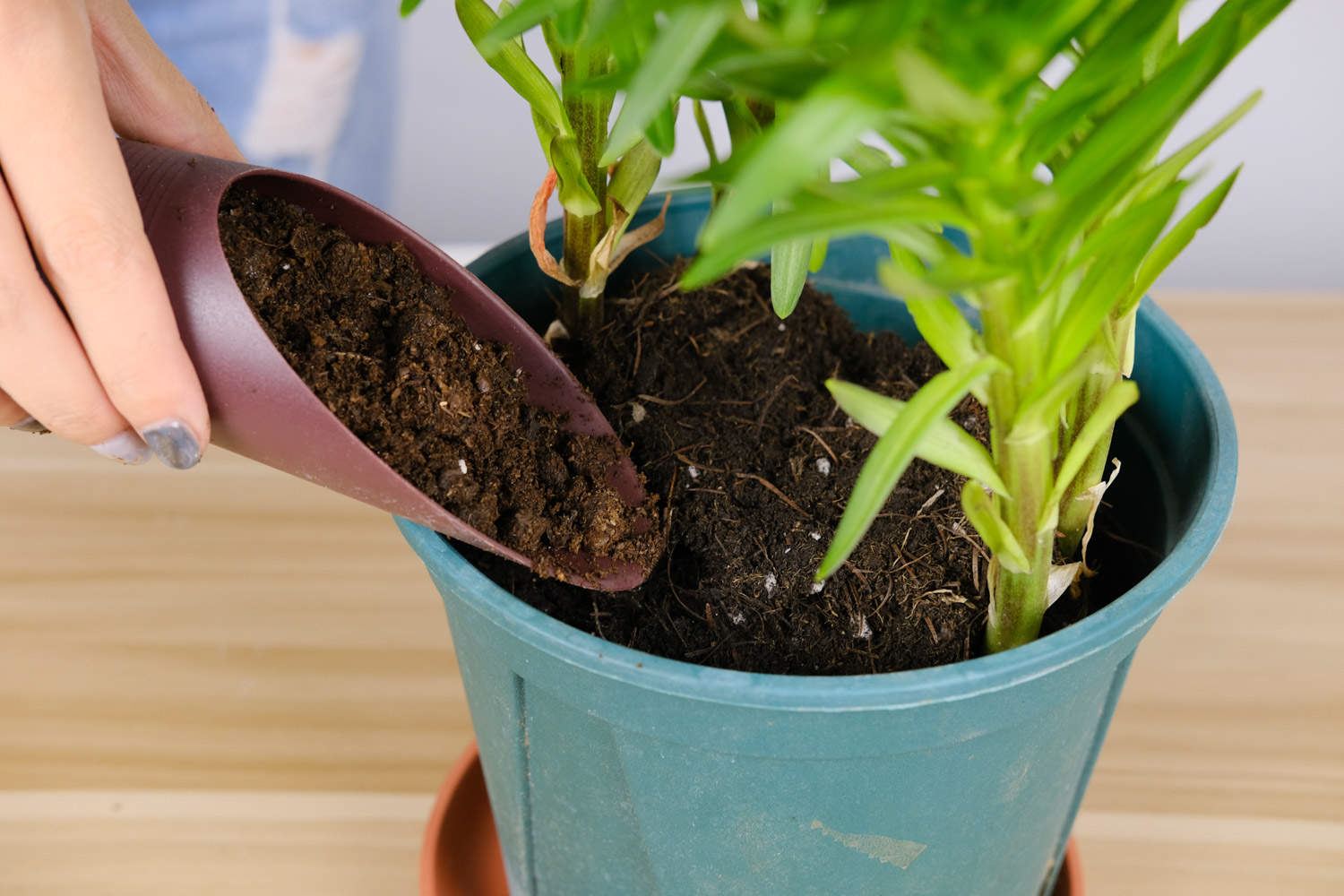 3、开始扦插:将鳞片晾晒干燥之后,再把它插进基质里面,如果说扦插后土壤比较干,那就需要给它浇一些水。最后,放到空气流通的阴凉处,等待30天左右就生根了。