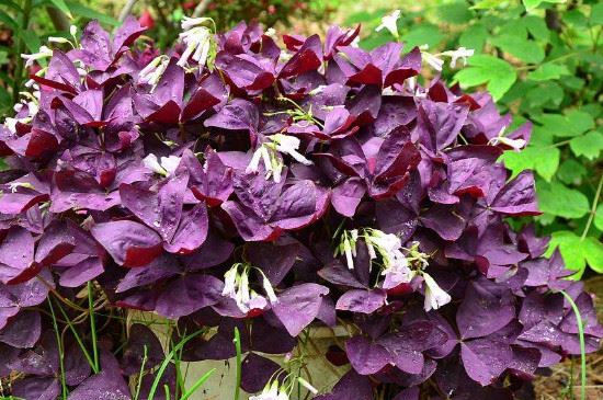 紫叶酢浆草的花朵在阴雨天不会开放,这时它的花朵只会以花苞的形式长在枝条,紫叶酢浆草的叶片到了晚上会收拢下垂,到了早上才会舒展开。紫叶酢浆草是喜光的植物,种植时最好将植株放置在通风且光照充足的环境中。