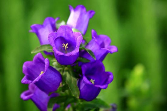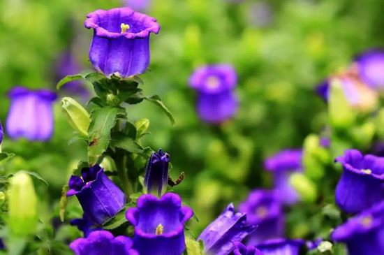 风铃草是多年生长的桔梗科风铃草属宿根草本植物,高度为50-120厘米,具有倒卵形的叶片。它的花朵颜色很多,有紫色、蓝色、白色等三种颜色,原产于南欧等温带地区,在中国各地都有分布。在风铃草生长较为旺盛时需每月施加两次稀薄液肥或者粪肥,适合养护在光照充足的环境中。