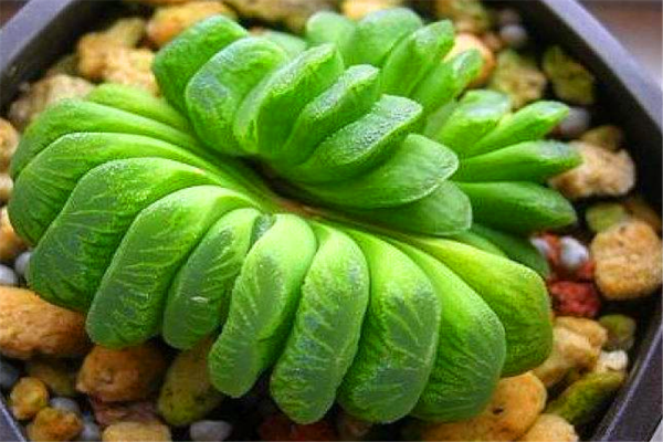 玉扇是一种非常漂亮的多肉盆栽,叶片肥厚饱满,颜色翠绿鲜亮,而且叶片的形状非常独特,看起来就像一列列整齐排列的扇骨,养护得当会让它呈现一个完美的展开扇面的形状。而且玉扇的叶片顶端会有一个窗,看起来像是一个截面,呈现透明的玉质光彩,这也是玉扇名字的由来。但是想要把玉扇养好,我们首先就要了解它的习性,今天绿植物星小编就来给大家说说玉扇的养护技巧,掌握了3喜3怕,很快你家的玉扇就能出状态。