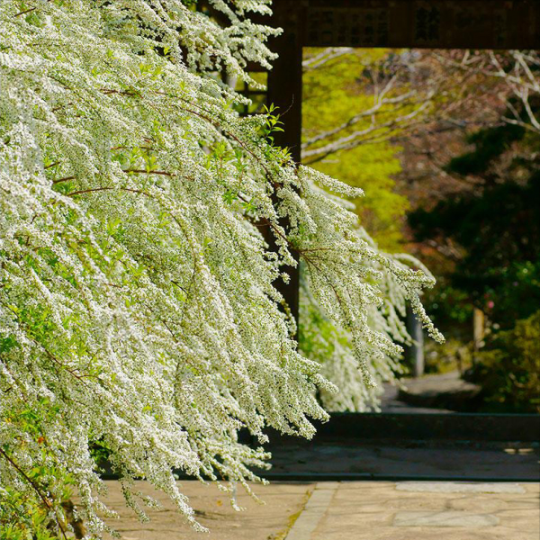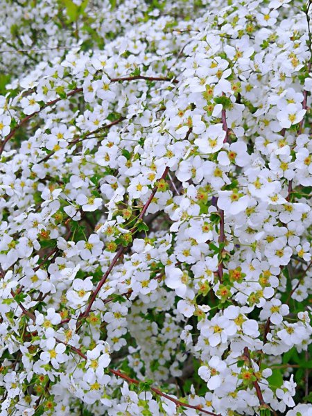 喷雪花的花朵形态十分美丽,花量非常大,呈洁白色,远看就像一棵挂满了白雪的灌木植物,非常抢眼。可以剪下枝条制作成鲜花,一枝上可以开出几十朵花,枝条柔美,形态美观,非常漂亮。
