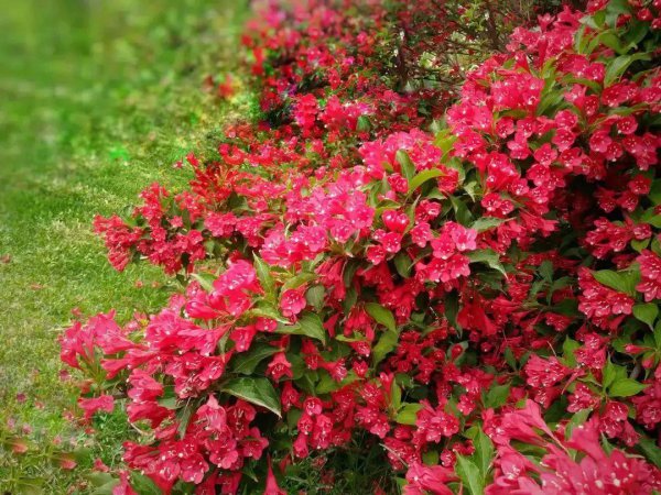 红王子锦带开出的花朵颜色鲜艳,虽然花朵个头不大,但花量很大,一枝上能开出上百朵花,看起来就像整株树上挂满了花朵,非常壮观。在一些北方的花园和绿化带中也有种植,既容易种植又没有病虫害,适合盆栽和地栽。