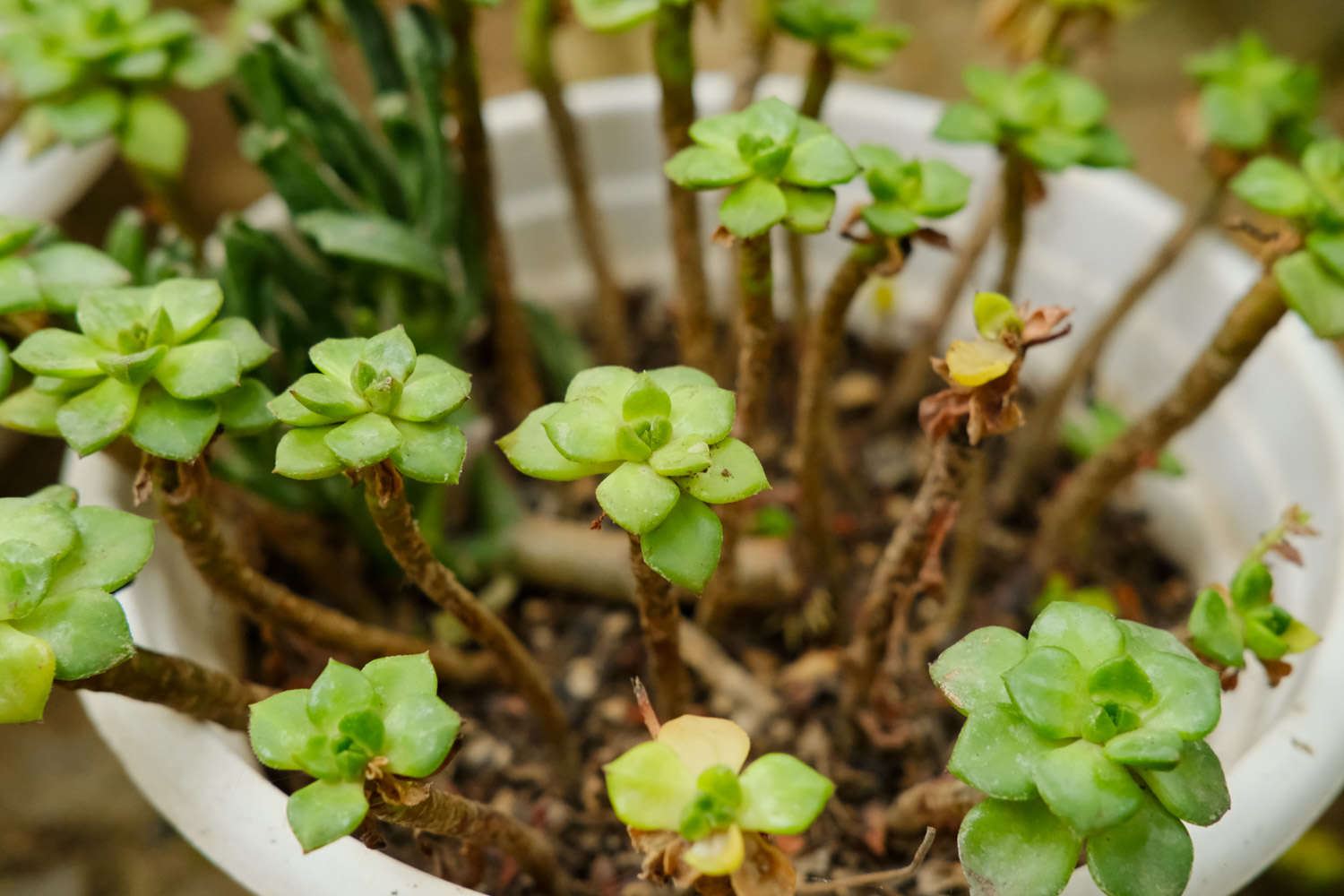 一、根部出现问题多肉的叶子一碰就掉很有可能是根部出现问题,已经烂根了。这种情况下要尽快脱盆,修剪烂根,修剪的伤口要消毒处理,消毒后再放在通风阴凉处,晾晒三五天后再重新上盆管理。注意刚上盆的植株不能立即浇水,要先缓几天才行。