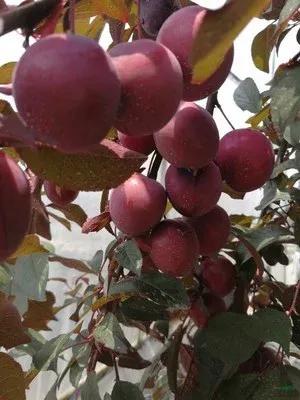 紫叶李,果实红得发紫,圆嘟嘟的,光溜溜的,甚是好看,酸酸甜甜涩涩,让人忍俊不禁;观果则难免会有所行动。