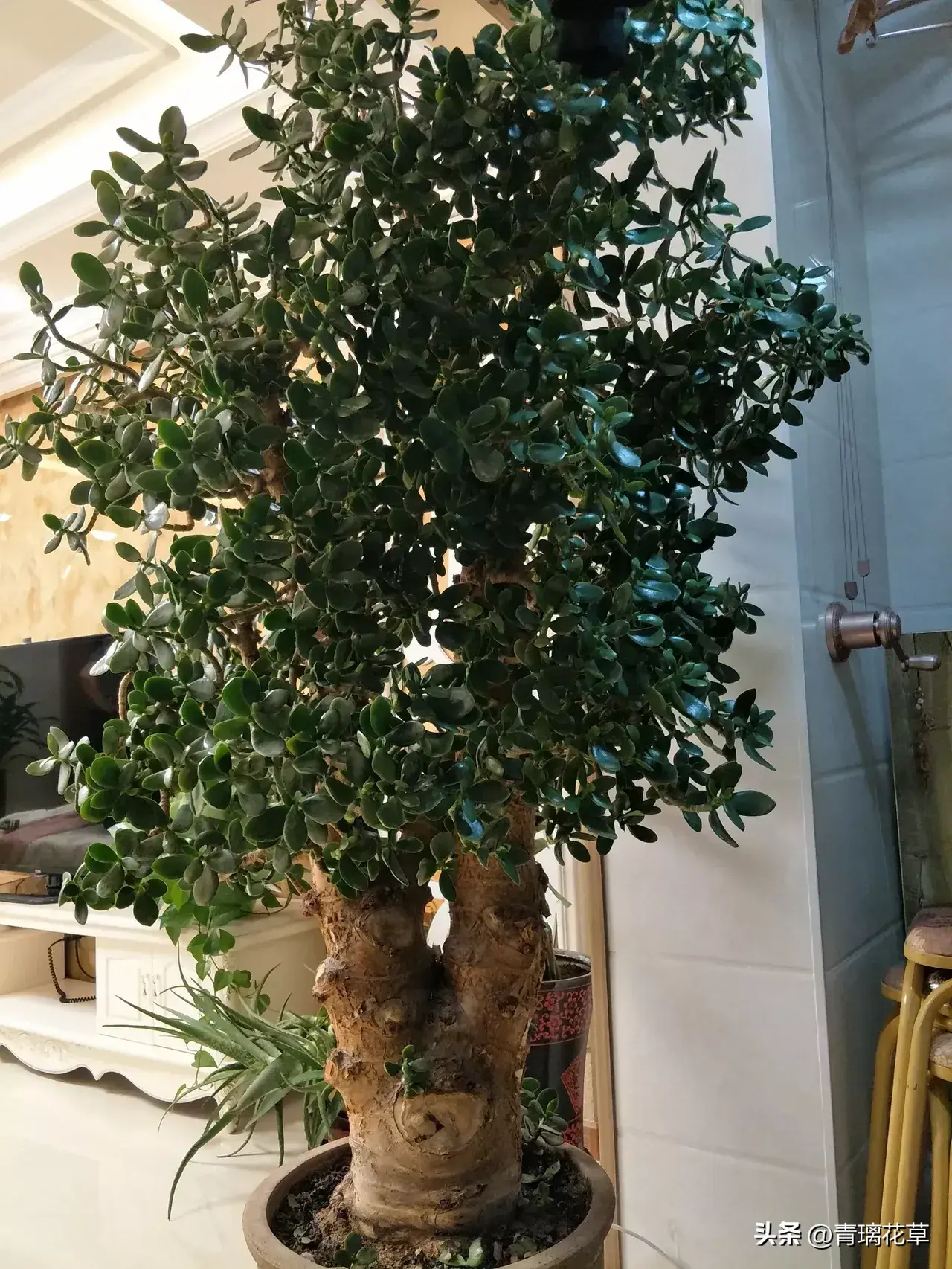 玉树是景天科植物中的“巨人”,肥厚的叶片是其最明显的特征,除此之外就没什么“亮点”了,因为它们开花也不漂亮,在小苗养护期时,甚至还没有花开呢。不过,可别小看了玉树,随着它们逐渐长大,枝干逐渐木质化,花友们就会发现这简直就是不用设计自然而成的天然“盆景”啊。