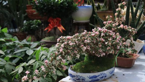 这种植物与玉树是同科植物,不过相比较玉树而言,它在“颜值”上要稍胜玉树一筹—名字其实就说明了一切。它们的叶片更绿更小,衬以枣红色的枝干,确实对得起“金枝玉叶”这个名字。这么说吧,如果玉树是以“魁伟”为主要特点的话,那么金枝玉叶就以“清新典雅”为主要特点。它们的可塑性很强,平时按照预想的造型多做专门的修剪和诱导性生长,等长到一定株形就可以用捆扎、提根等手段做出设定的株形了。