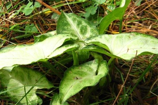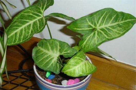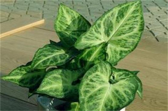 合果芋的叶片颜色是根据其所生长的环境进行适应调节的,如果靠近树木会成为深绿色,如果接近地面则为白绿色。因此将合果芋养护在家中,其美丽富于变化的叶片就可以很好的装饰房间,使其看起来更加美观。