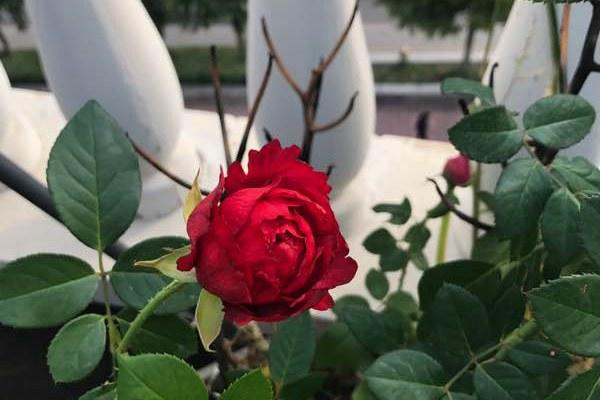 绯扇绝对是大花月季中的NO1,它的花朵一般能够开到十五公分,大的可以达到18公分,花色是标准的大红色,也很耐开,正常开个一周是没有问题的,另外它还有个娣妹品种,叫粉扇,就是颜色不一样,其它都差不多。