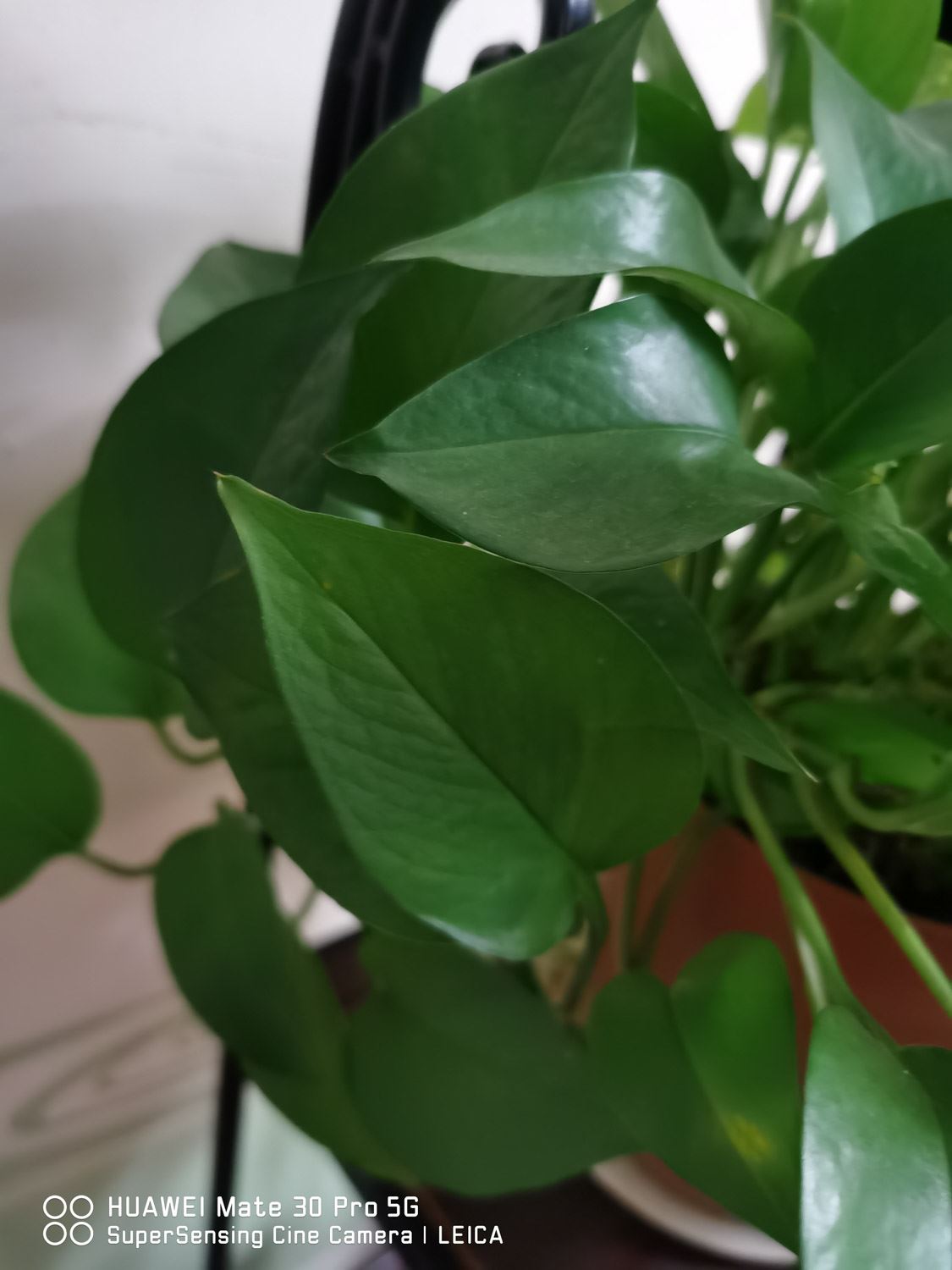 绿萝属于常绿观叶植物,但家养的通常不开花。它的叶子是纸质,形状是宽卵形。底部的叶子更大一些,可长达10厘米,上部的只有6-8厘米。枝条上有气根,这是它呼吸的所在。另外,由于品种不同,它的叶子颜色也有变化,有的是金黄色,有的表面有斑纹。