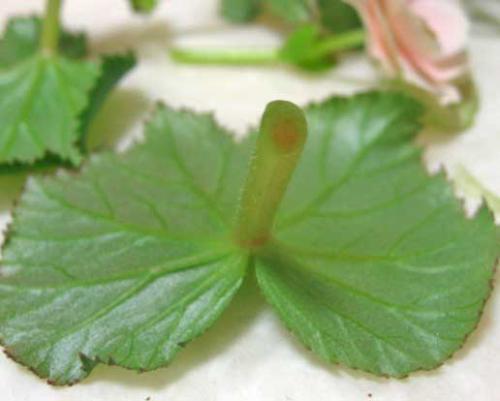 (1)初夏是丽格海棠扦插的最佳时期,室内温度正好适宜。选一个没有开过花健康的侧枝进行掰下。