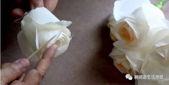 用一根小棍子卷曲每个花瓣。