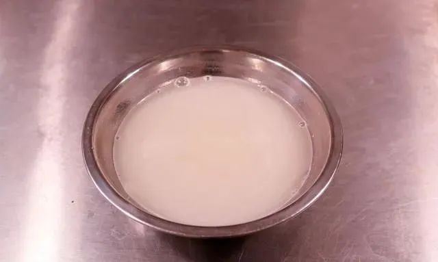 3. 取一个大一些的盆子,干净无水,盆底撒上适量混合粉备用(混合粉是60%面粉 40%糯米粉)