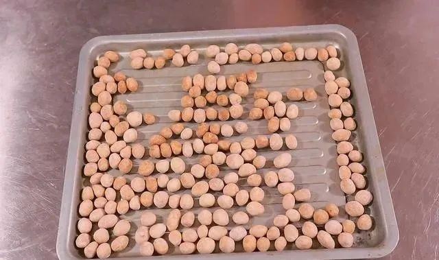 制作前,要对花生进行简单挑选,尽量选大、小一样的。如果用纯面粉制作,面粉里要加2%泡打粉。一些乡土零食小吃,比如怪味蚕豆,麻辣花生米之类的,也可以用这个方法做得更美观一些。