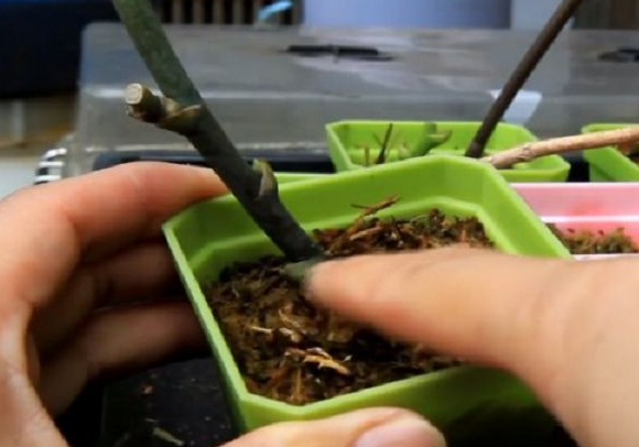 在花谢后,选取茎干上的嫩芽,要求健康、饱满、无损伤、无病虫害,随意截取的枝条反而不利生根。当蝴蝶兰花谢后后,继续培养茎干上的嫩芽,当长到5cm左右时将其截取下来,浸泡在生根粉溶液中15分钟后取出。将插条插入经过消毒的种植基质,深度在2cm左右即可。然后喷水保持基质润而不湿,保证茎干能够呼吸。然后每3天左右喷水1次。