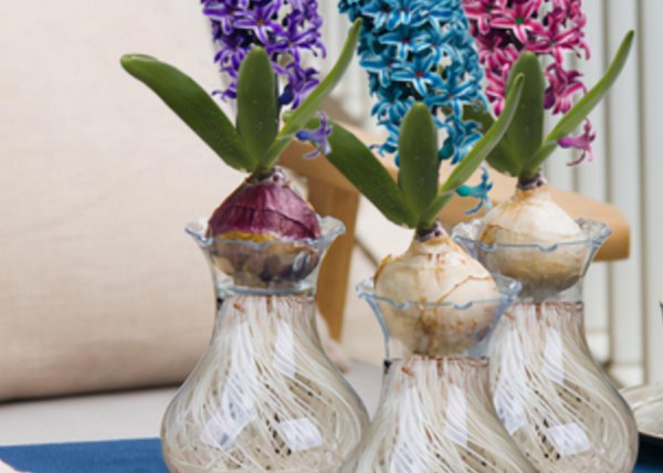 因为水培葡萄风信子除了观花之外,发达的白色根系也是一个小景观,所以建议使用水培风信子的玻璃透明花盆,花瓶“脖子”的地方会卡住种球,几个种球种在一起,会起到固定的作用。