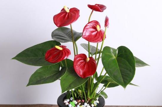 红掌适宜生长在腐殖质含量丰富、排水性能较强的土壤中,配土时,可将泥炭土、珍珠岩、腐叶土混合制作成栽培的基质。选择透气性较强的陶盆或瓦盆作为容器,在盆底铺设一层碎瓦片或煤渣提升土壤的透气性。