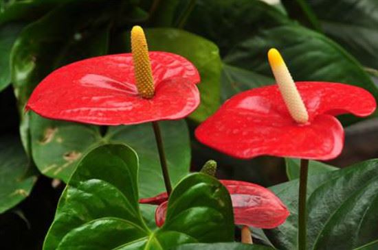 红掌在生长期间对养分的需求也较大,由于叶片表面带有一层蜡质,对养分的汲取能力较弱,因而施肥时主要以根外施肥为主,在秋季可每隔3~4天浇灌一次液肥,夏季可每隔2天施一次肥,施肥时间选择在每天上午8时或下午5时进行。