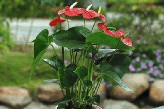 每次为红掌换盆后,需进行缓盆。缓盆指的是将红掌放置到通风透气的半阴环境下,用1~2周的时间让红掌适应新的生长环境。若没有进行缓盆,红掌就会无法适应生长环境,出现死亡的状况。