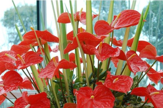 红掌适宜生长在光照充足的环境中,但不耐强光的暴晒。在春秋冬三季可将其放置到光线明亮的环境下养护,接受散光的滋养。在夏季光照过强时,需在植株上方搭建一层遮阳网。此外,在红掌生长期间,还需将环境温度稳定在15~33℃之间,冬季需转移到室内养护。