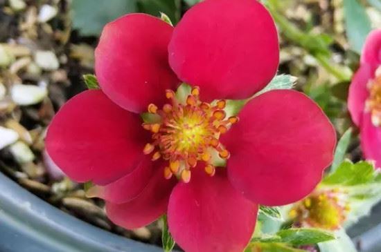 红花草莓属于杂交品种,也是多年生的花卉草本植物,株高可达10~15公分左右,一年四季都是红花,颜色鲜艳,具有较强的耐旱和耐寒性,叶片颜色浓绿,生长繁茂,掩盖性很强。