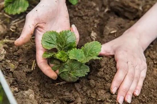 栽种草莓幼苗时,挖宽1.2米~1.5米的浅沟,行距为20~25cm,株距15~20cm。新栽种的幼苗需要在栽种完成后马上浇一次水,并且浇透,让根部周围处于微湿的状态,保持周围环境湿润,有利于缓苗,更快适应新环境,恢复生长,如果积水要马上进行排水。
