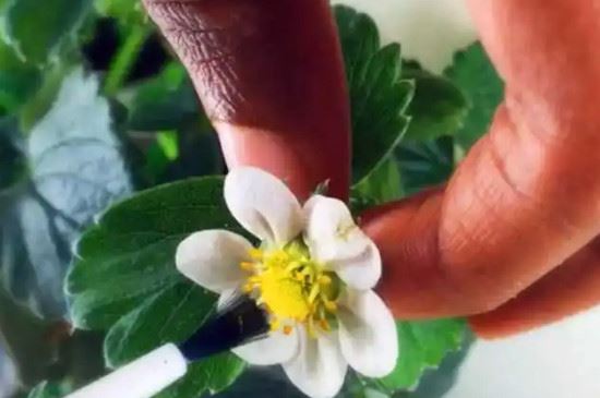 草莓需要进行授粉,雌雄同株的植株不经过授粉也可结果,但果实的品质不好,通过蜜蜂进行授粉产量会更好。一般在上午进行人工授粉,使用棉签或者毛刷分别触碰雄蕊以及雌蕊,就可完成授粉。对植株的花朵喷洒植物激素就是激素授粉,它的速度很快。花朵开放20%以上时就可进行蜂类授粉。