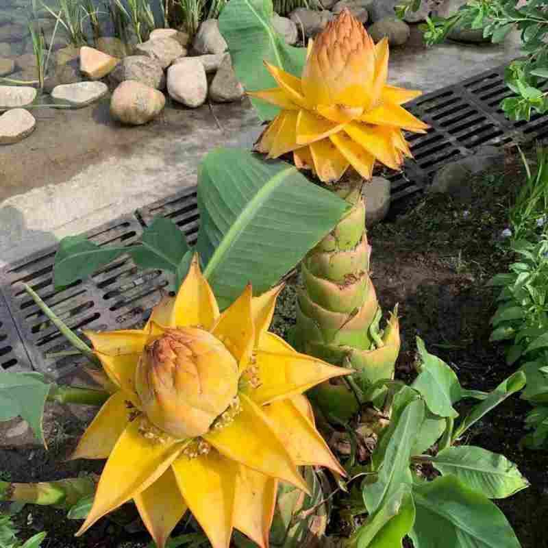 地涌金莲有水平向根状茎,假茎矮小,一般不会超过60cm,叶片50cm长,宽20cm,呈长椭圆形,先端锐尖,基部为近圆形,花序直立,生在假茎上,长度在20-25cm,苞片为黄色、淡黄色,合生花被片为卵状长圆形。
