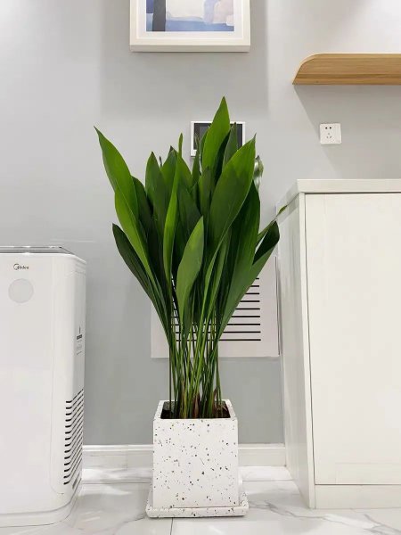 冬天养护一叶兰,摆放位置也有讲究,尤其是北方家里有暖气的花友,摆放位置尽量远离风口及暖气片等取暖设备,以免冷风或暖风直吹植株,加速植株水分流失,从而出现干尖、黄叶等现象;如果是地暖的话,尽量避免直接摆放到地板上;另外,晴天中午天气比较暖和的时候,还要适当开开窗透透气,以加强室内外空气的循环,促进植株的呼吸和代谢,减少病菌滋生。