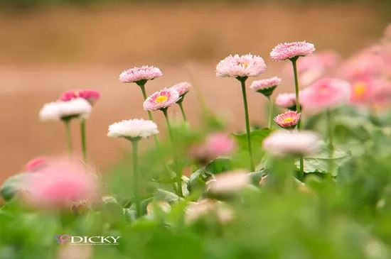 雏菊的花语为天真单纯,雏菊的花型小巧灵动,花朵娇嫩可爱,色彩丰富,从远处望去好似一位身着各色衣裙的小孩,能给人一种天真生动和心思单纯的感觉。可将小雏菊送给身边心思单纯的朋友表达赞美之情。