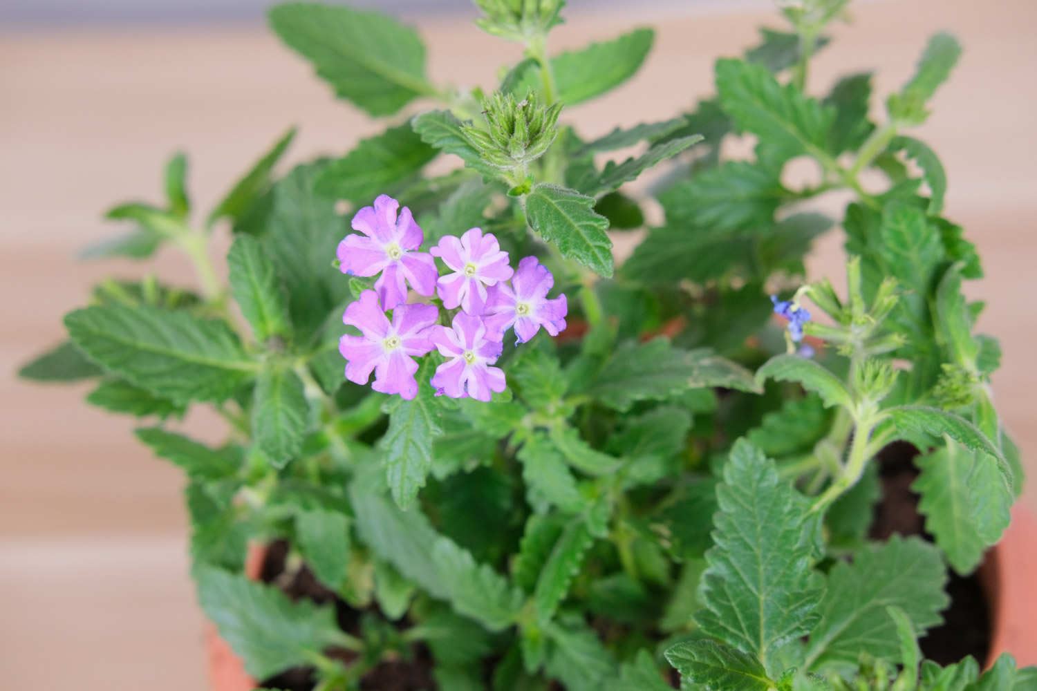 3、浇水:美女樱的根系较浅,水浇的少,会让根系吸收不到水分。所以务必保证盆土自上而下都是湿润的,但不能有积水。