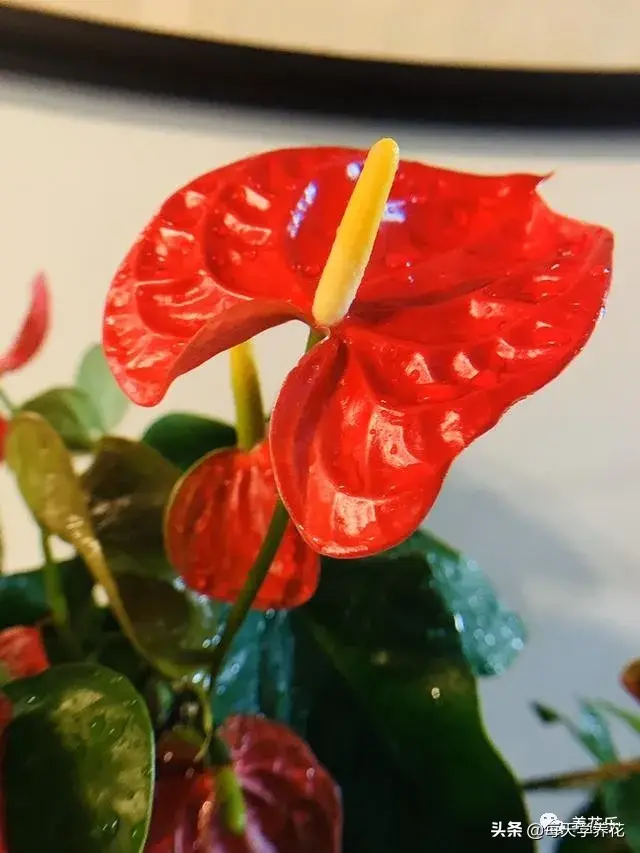 红掌比较喜欢光照充足的环境,现在正好是春天,养在家里光照充足的地方都没什么问题,但是到了夏天的时候就得注意了,要给红掌遮遮阳,不然叶子和花容易被强烈的阳光给灼伤。