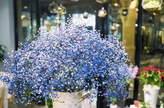 蓝色的满天星给人一种梦幻的感觉,它的花语是青春、如梦似幻般的温柔。可以用来送给爱人、同事、或者朋友,表达自己的思念以及温柔的爱情,可以让朋友之间感情更加深厚。