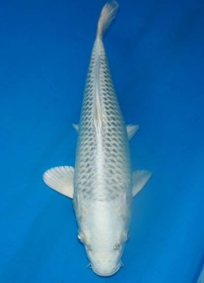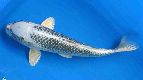 体形特征 必须体色纯白,全身光泽为白金色,头部光秃秃,覆鳞及胸鳍有光辉为条件。虽与山吹黄金一样,但白金必须光辉更强。