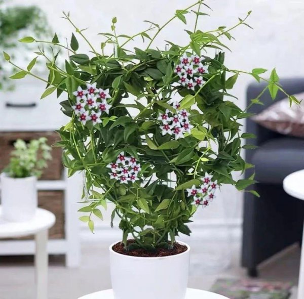 虽然名字里有个“兰”字,但实际上球兰并非兰科植物,是萝摩科球兰属多年生肉质亚灌木植物。由于特别受欢迎,很多育种家都培育,球兰品种有很多,比如心叶球兰、大花球兰、斑叶球兰、红花球兰等等,不同的品种在叶片形状、叶色、花型、藤蔓长度等方面都有区别,绝大部分品种的藤蔓长度在2~5米之间,属于中型藤本植物。球兰对光照的要求不高,在半阴环境的室内也能生长良好。
