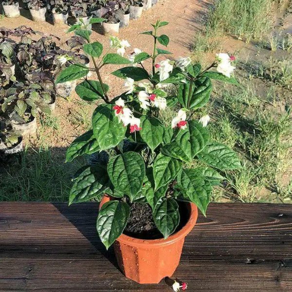 龙吐珠的枝条纤长带有藤性,喜欢攀缘生长。开花能力很强,四季开花,能从春天开到初冬,属于花叶俱赏的品种。