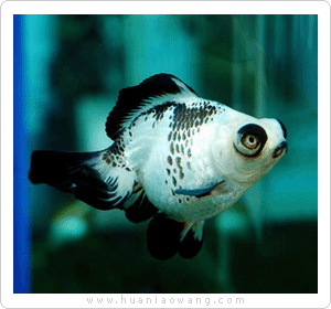 熊猫金鱼是一种色彩搭配酷似国宝熊猫的金鱼。虎头、蝶尾、水泡等品种都有此搭配。目前市面 上多见的是熊猫蝶尾金鱼,它体短尾长,色分黑白两种。除了身体两侧各有一道黑色外,各鳍皆为黑色,身 体呈亮银色。