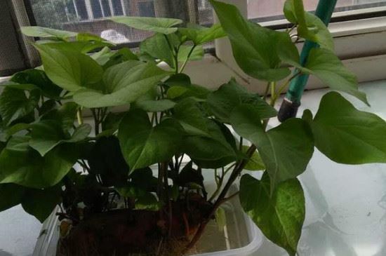 扦插后,覆上一层细土,适量的浇水,为插穗提供水分,有利于根系的生长。养护期间需要控水,后期插穗生出根系后,可以送给其充足的光照、水分和肥料。后期红薯成年以后,需要定期给其喷洒药剂,能够有效预防病虫害。