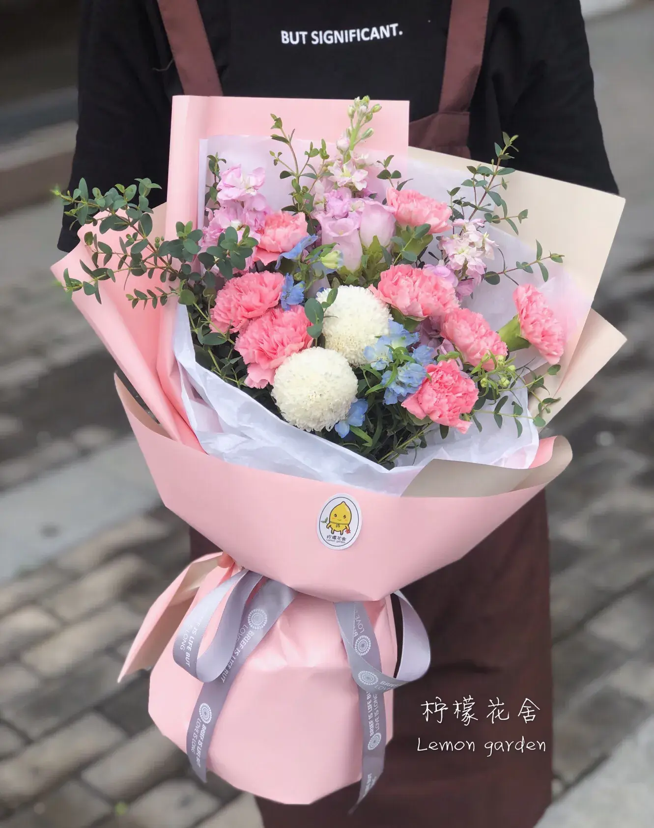 康乃馨的花语是热心、母亲我爱您,所以常被作为献给母亲的花,纯康乃馨放在一起就很漂亮,搭配玫瑰或者百合也别有一番风味。