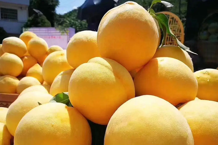 炎陵黄桃属锦绣品种,品质优异,以靓、脆、香、甜享誉市场,享有“天上仙桃,炎陵黄桃”的美誉。尤其是具有桃形周正、着色均匀、果面亮泽、桃核周围果肉鲜红、甜度适中、酥脆可口、香气浓郁等特有品质,备受广大消费者的推崇。