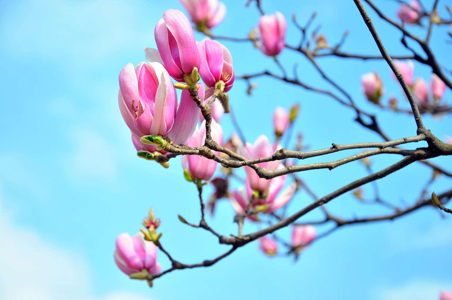 2、浇水:玉兰对水分比较敏感,不耐涝也不耐寒。浇水要勤不要多,时刻让土壤湿润,但不能有积水。生长季节每月一次就足够了,雨季则要停水。
