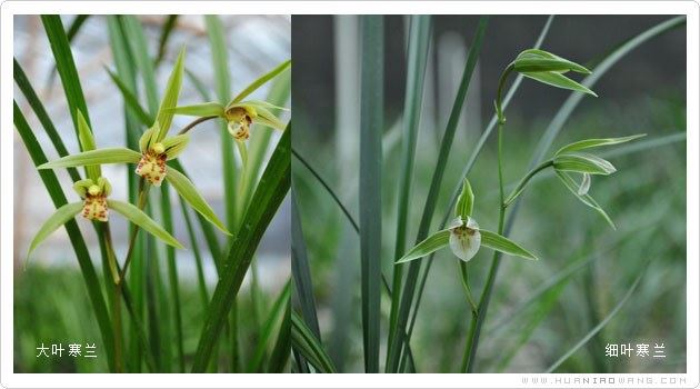 大叶寒兰,顾名思义,叶片(株型)相对来说比较高大,但大叶寒兰里也有相当一部分的叶型是比较矮小的,大叶寒兰的叶色较淡,叶面亮泽,根比较细;细叶寒兰的叶片(株型)相对来说是比较矮小的,同样也有一部分是比较高大的,细叶寒兰叶色较深,光泽度较大叶为次,粗根的多,也有极少部分是细根的。