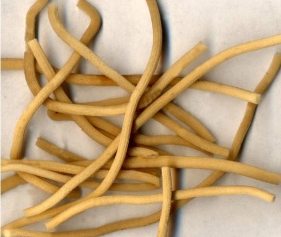 (2、)朱灯心:取剪好的灯心段,用水喷洒,使微湿润,放瓷罐内,加入朱砂细未,反复摇动至朱砂匀布为度。(每灯心10斤,用朱砂10两)。