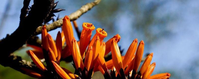 火烧花又称缅木、火花树、炮仗花等,是属于紫葳科火烧花属的杯子植物,原产地在美洲热带地区。它株高可达15米,树皮为灰褐色,表面光滑,花梗长5-10毫米。它的花期在2-5月,果期在5-9月,花语为用我的热情抚平你受伤..